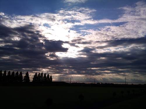 mutakoba@大仏です。 1週間ぶりのジテツウ。ちょっと肌寒く長袖長タイツ投入です。 今日の空はきれいでした。 あぁ、神々しい。 追い風もあって、サクサクっと会社に着きましたが、 途中泥道にハマってチャリドロドロ。 洗車してから仕事っす。 ち~ん。